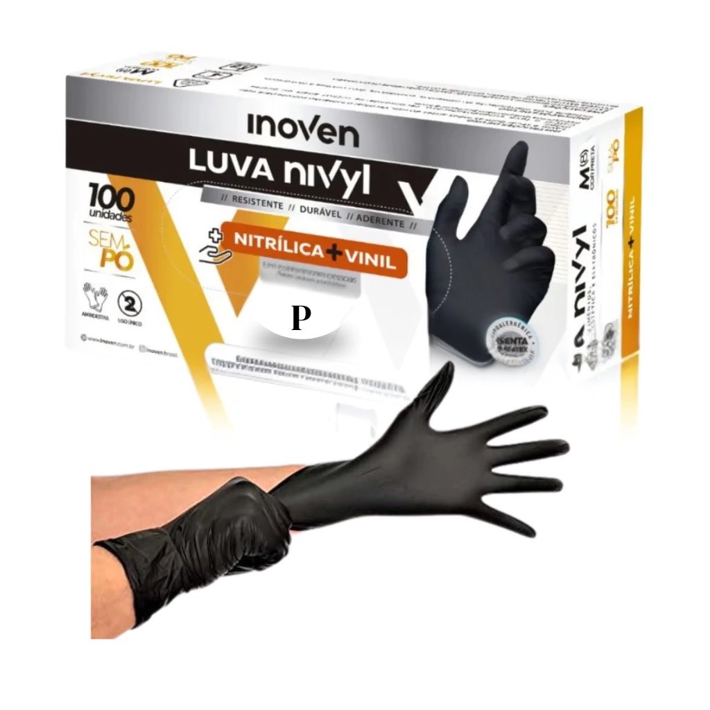 Luva Nivyl Preta Nitrílica Vinil Sem Pó Tamanho P.